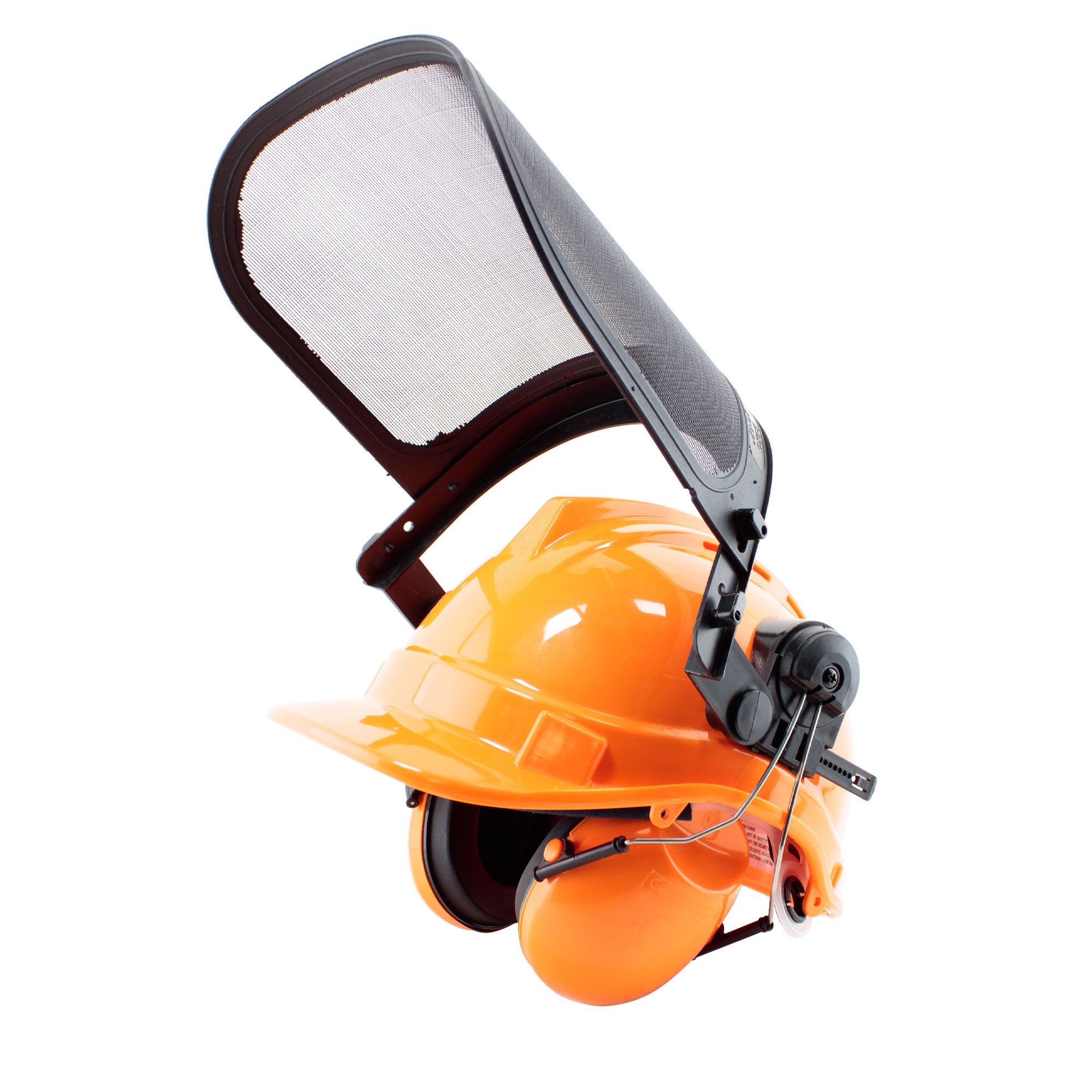 Elmetto protettivo con visiera e cuffie antirumore schermo per decespugliatore e motosega