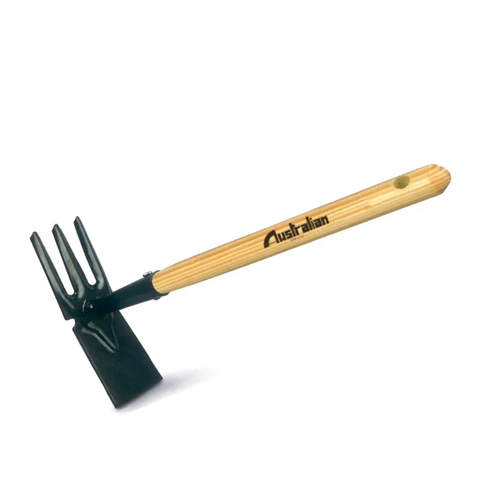 Zappa triangolare strumento agricolo per lavorare il terreno in acciaio forgiato con manico in legno