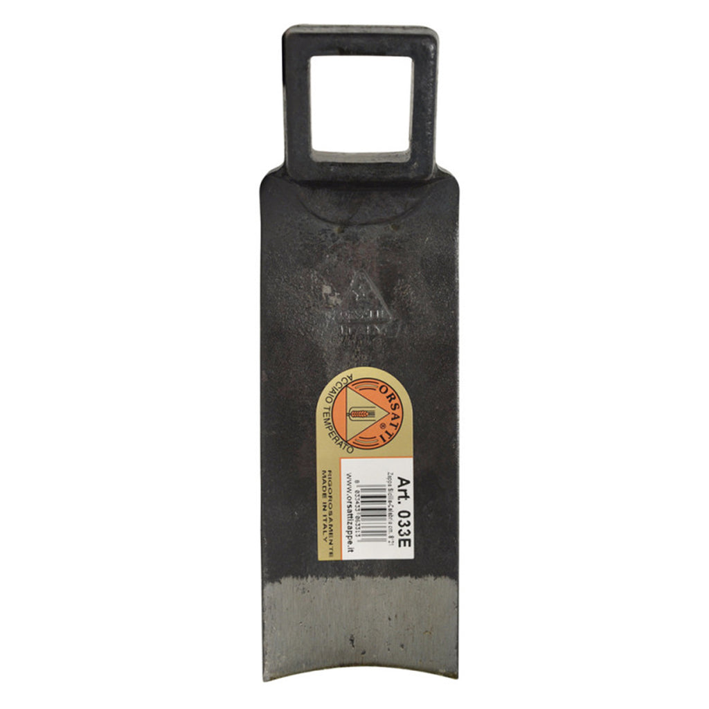 La lama della zappa può essere realizzata in diversi materiali, come acciaio o ferro, ed è fissata all'estremità inferiore dell'asta. La forma della lama può variare leggermente a seconda dell'uso specifico della zappa. Tuttavia, generalmente è piatta e presenta un lato affilato per tagliare il terreno e un lato più ampio per sollevarlo o spostarlo.