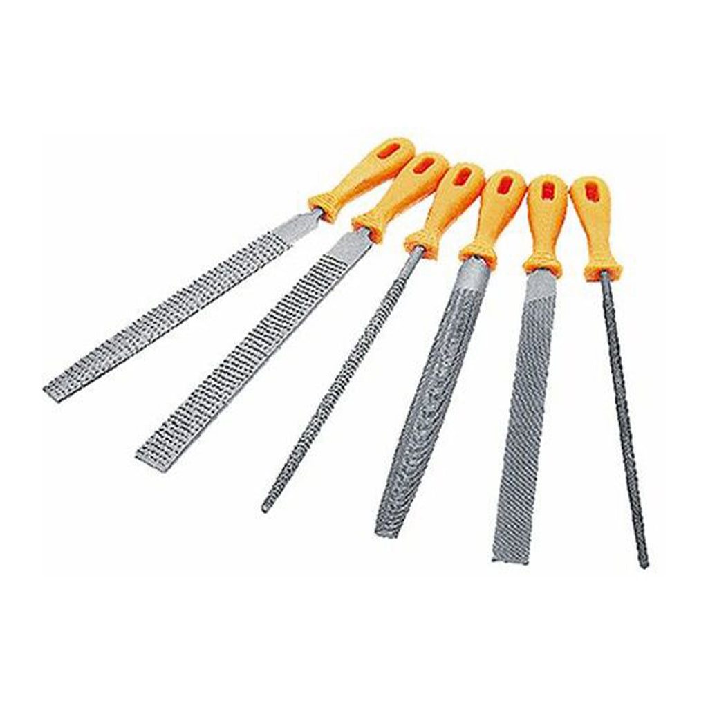 Il set da 6 lime e raspe con impugnatura in plastica è un kit versatile pensato per lavori di modellatura, rifinitura e sgrossatura su diversi materiali come legno, metallo e plastica.