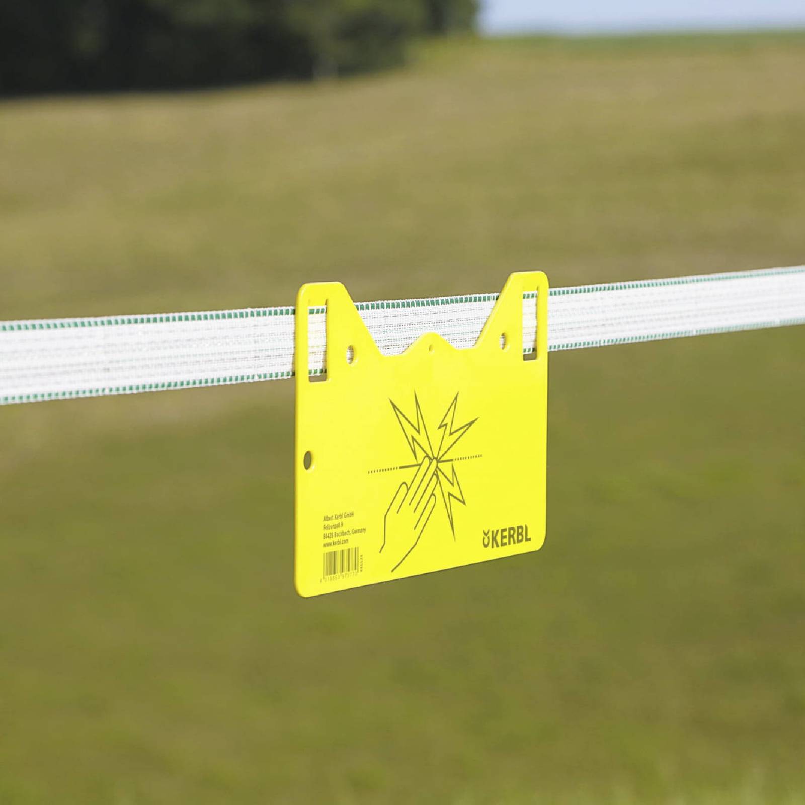 Cartello segnaletico in plastica gialla per segnalare tutti i componenti di un recinto elettrico