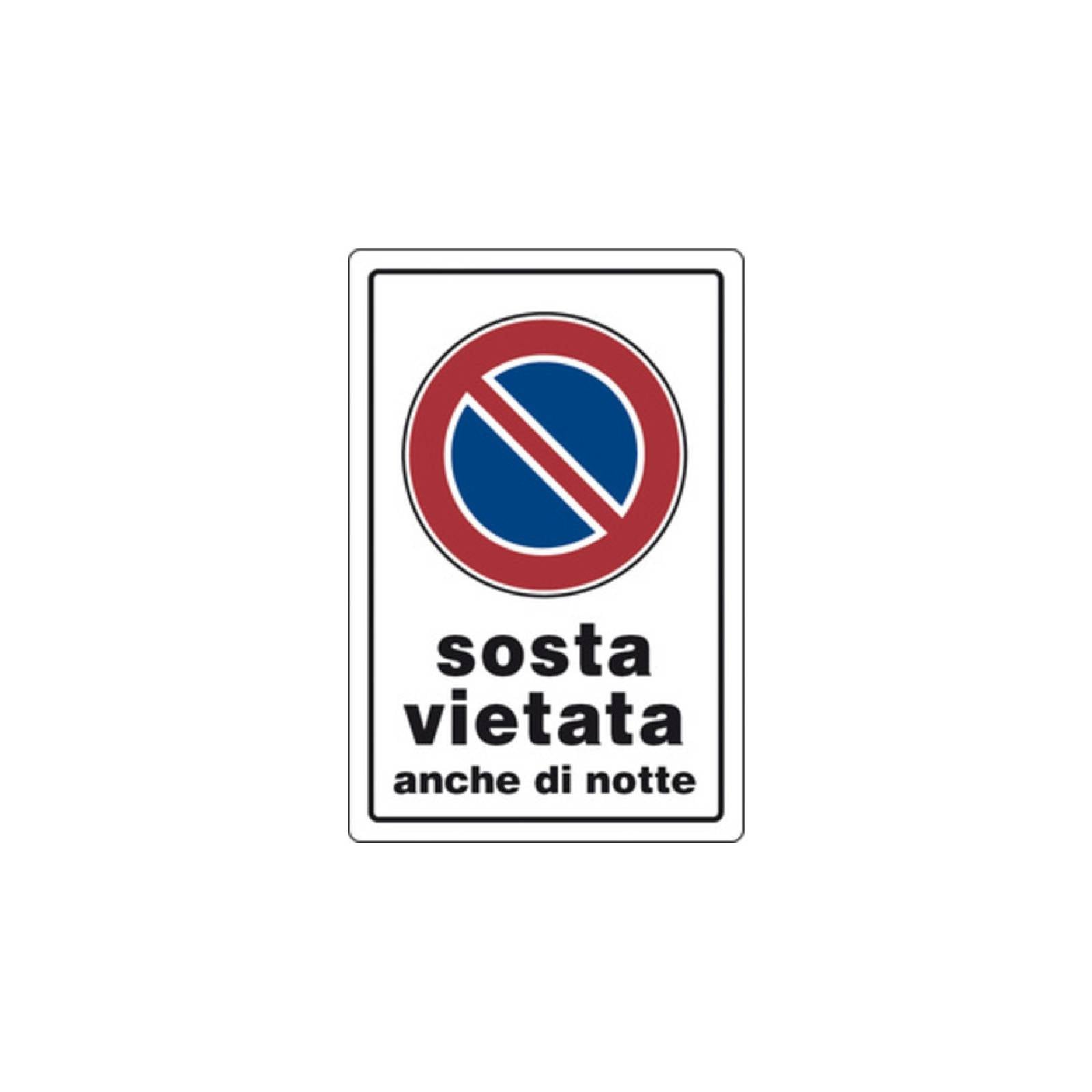 Cartello segnaletico "Sosta Vietata anche di notte" realizzato in pvc 20 x 30 cm