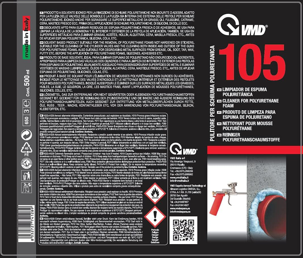 Pulitore per schiuma poliuretanica VMD per uso professionale 500 ml