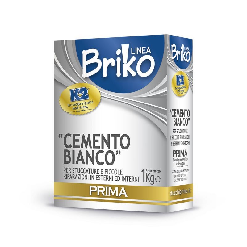 Cemento bianco in polvere Briko K2 per piccole riparazioni e stuccature interne ed esterne
