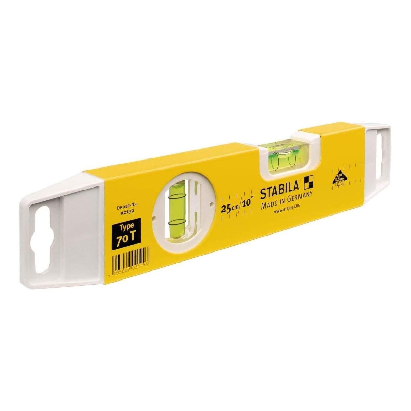 Livella a due fiale "70 T" tascabile e leggera realizzata in alluminio 25 cm