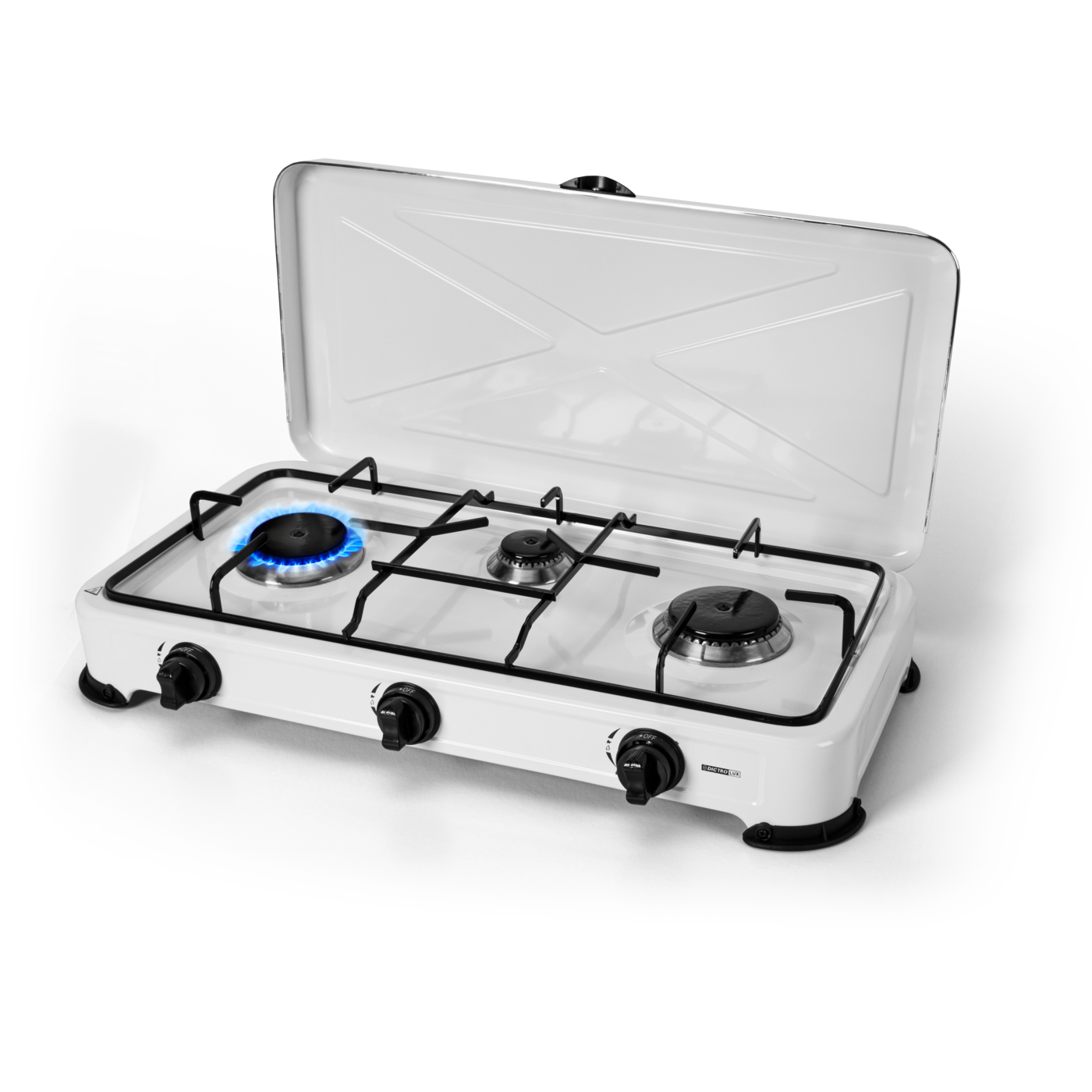 Fornello a gas da campeggio 3 fuochi con coperchio fiamma regolabile