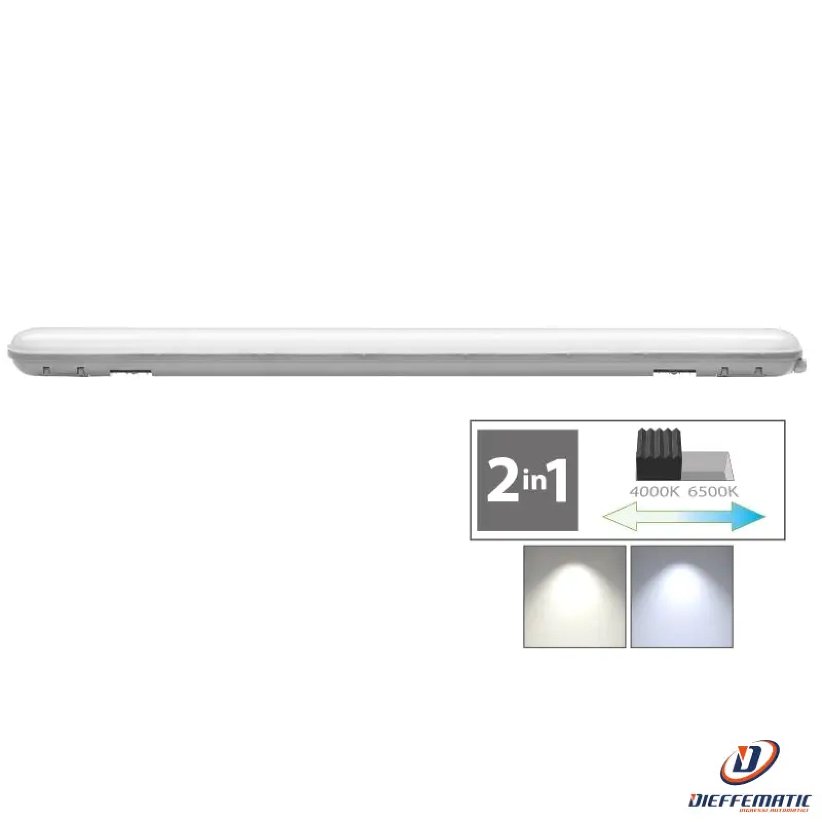 Plafoniera NEOS doppio tubo led cambia tono in plastica bianca
