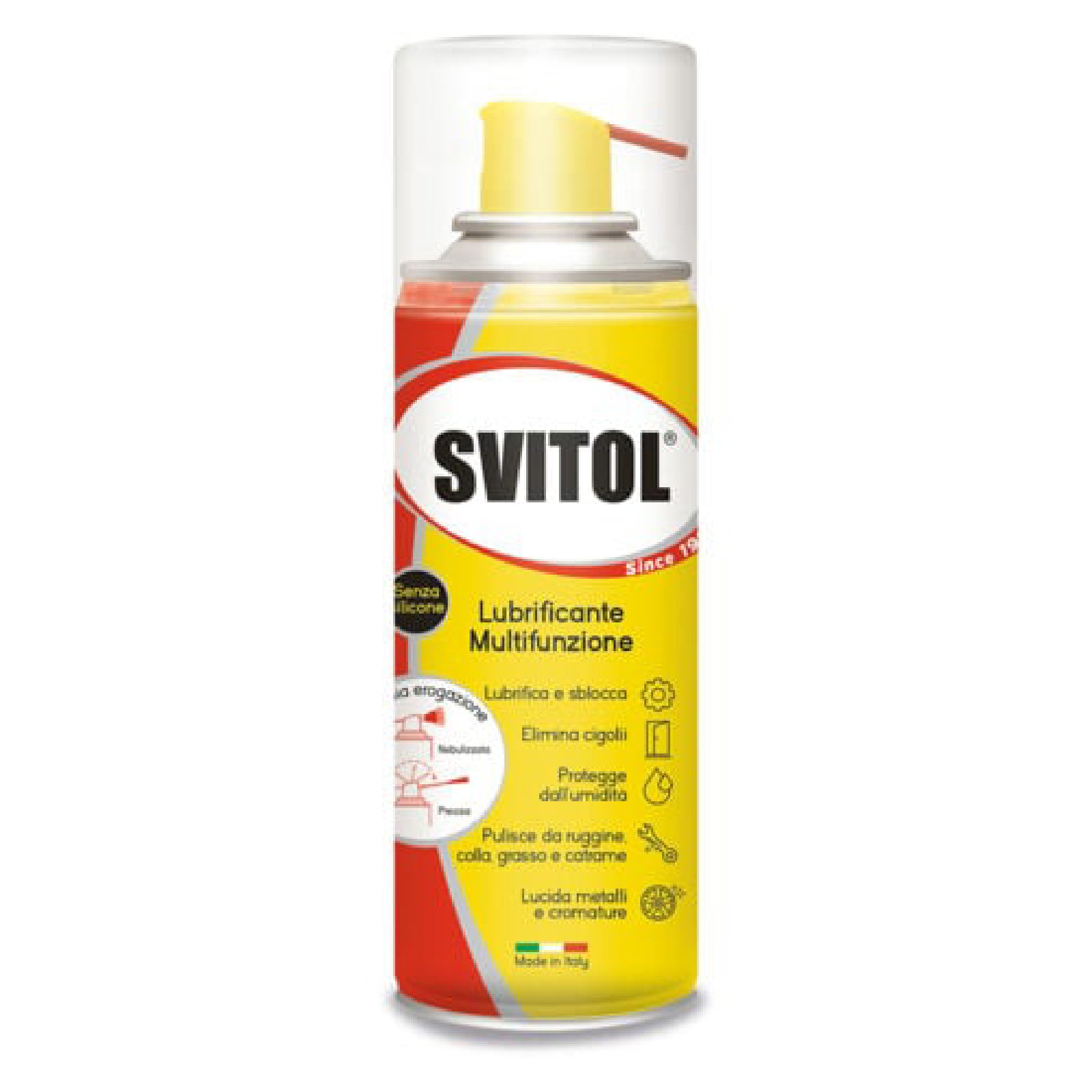Sbloccante spray "Svitol 6 in 1" prodotto multiuso formulato con particolari sostanze lubrificanti ed emollienti