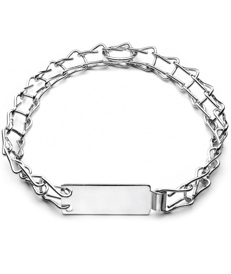 Collare a scaletta in acciaio nichelato per cani con targhetta