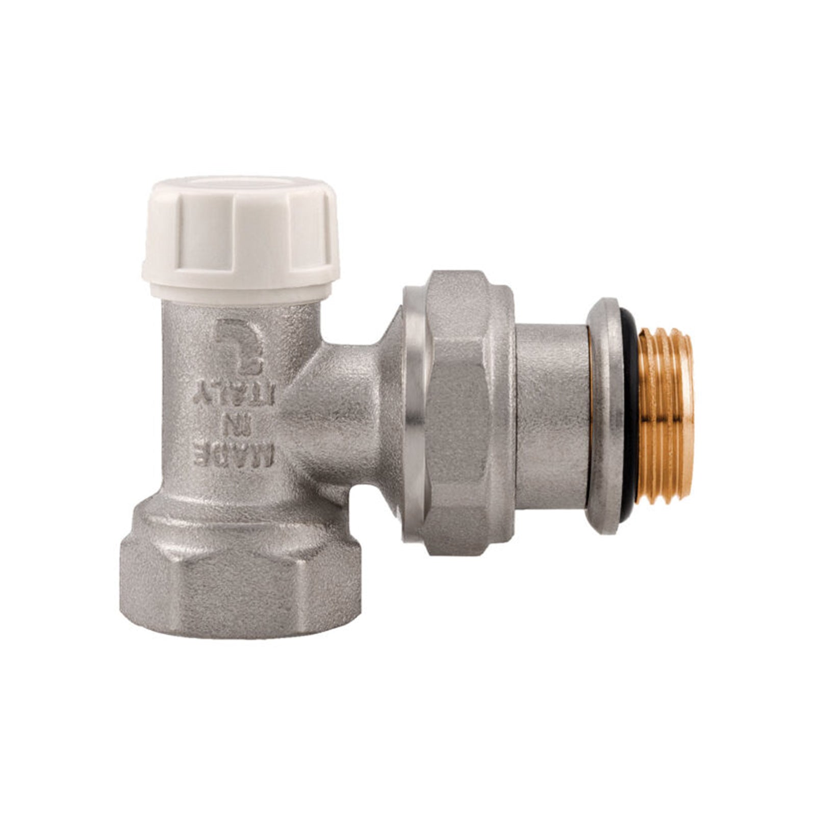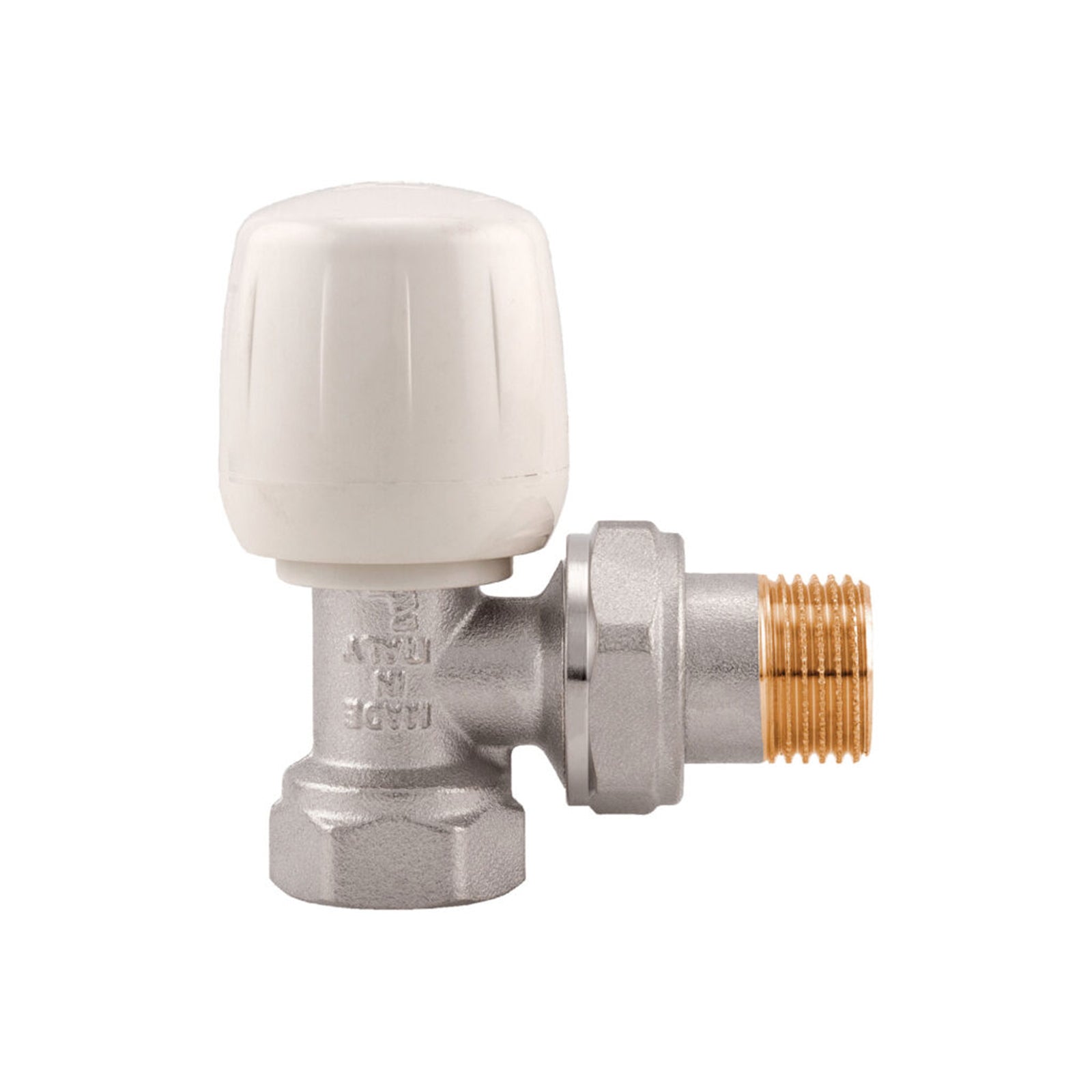 Valvola ad angolo manuale per radiatori con corpo in ottone nichelato per irrigazione