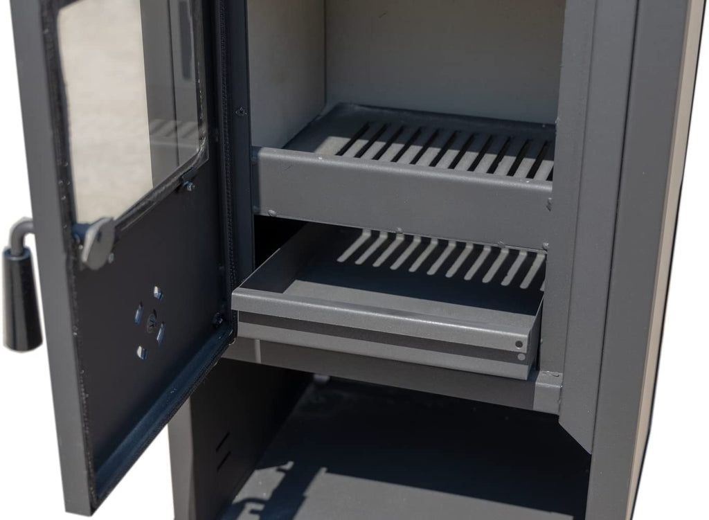 • Ampio cassetto totalmente asportabile per agevolare raccolta ceneri residue e con dispositivo a scorrimento orizzontale per una corretta carburazione della combustione
