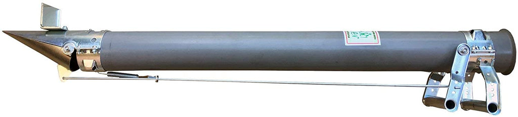 E' formata da un corpo cavo cilindrico in PVC,e una maniglia all'apice collegata con un sistema a molla al puntale.