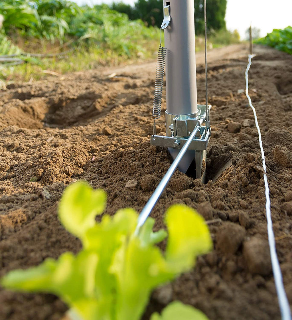 Il trapiantatore manuale da orto Roll-in riesce con una semplice pressione sul terreno a forare e trapiantare qualsiasi tipo di piantina in bulbo in modo preciso.