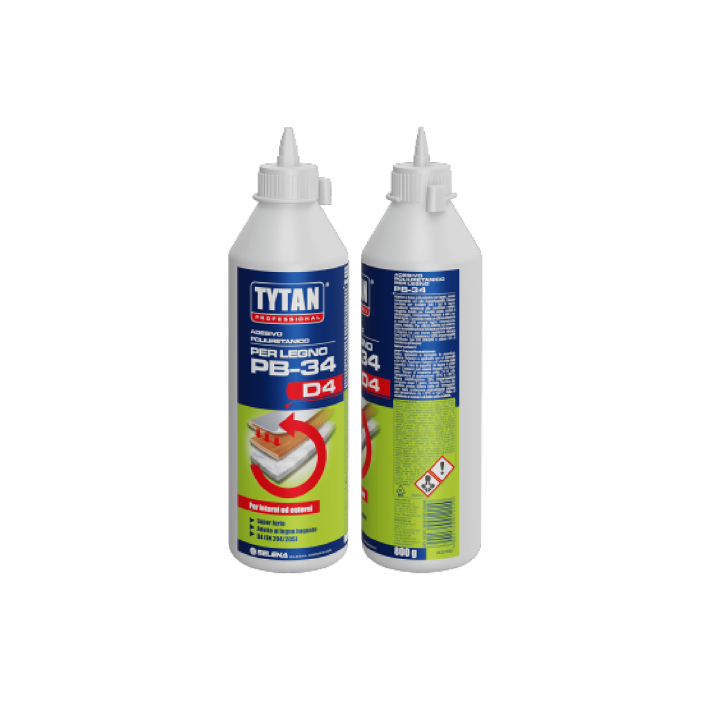 L'adesivo poliuretanico per legno PB-34 giallo chiaro da 800 gr di TYTAN PROFESSIONAL è una soluzione monocomponente di alta qualità, progettata per polimerizzare grazie all'umidità presente nell'aria e nei materiali da incollare.