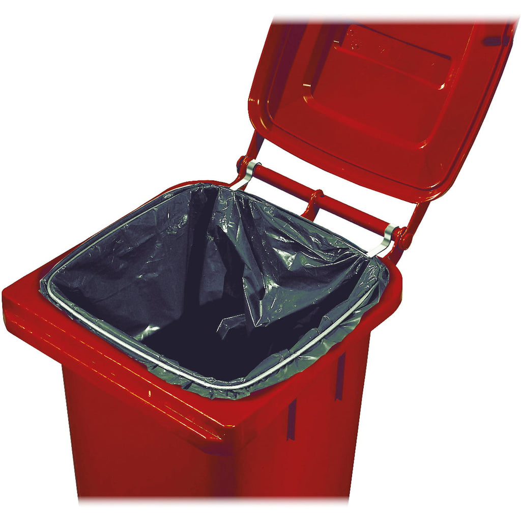 Questo anello viene applicato intorno all'apertura superiore del bidone, formando una barriera che mantiene il sacco saldamente posizionato all'interno del contenitore.