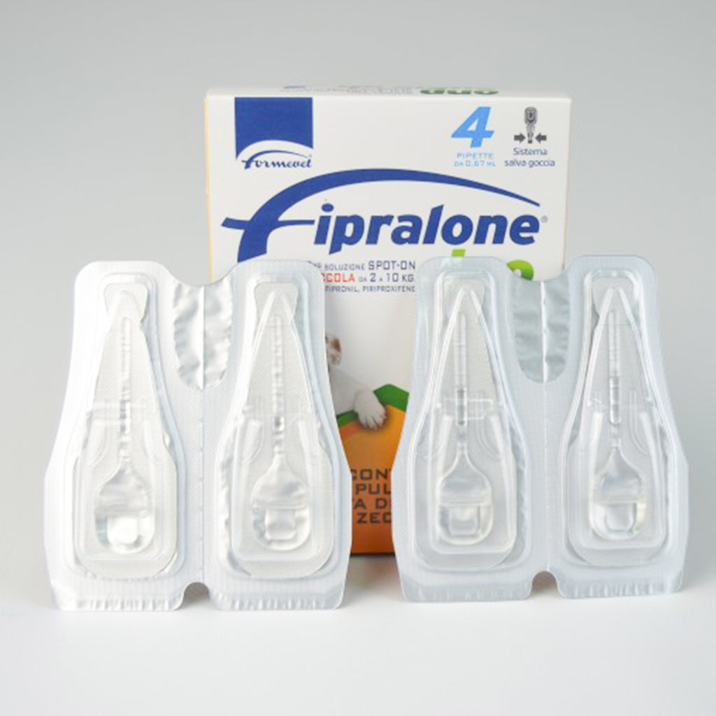 Come tutti gli spot-on di Formevet, anche le pipette di Fipralone duo sono trasparenti per un miglior controllo dell'erogazione e sono dotate di un sistema salva-goccia che permette un'accurata ed uniforme stesura sul dorso dell'animale riducendo così il rischio di effetti collaterali come arrossamenti di prurito nel punto di applicazione.