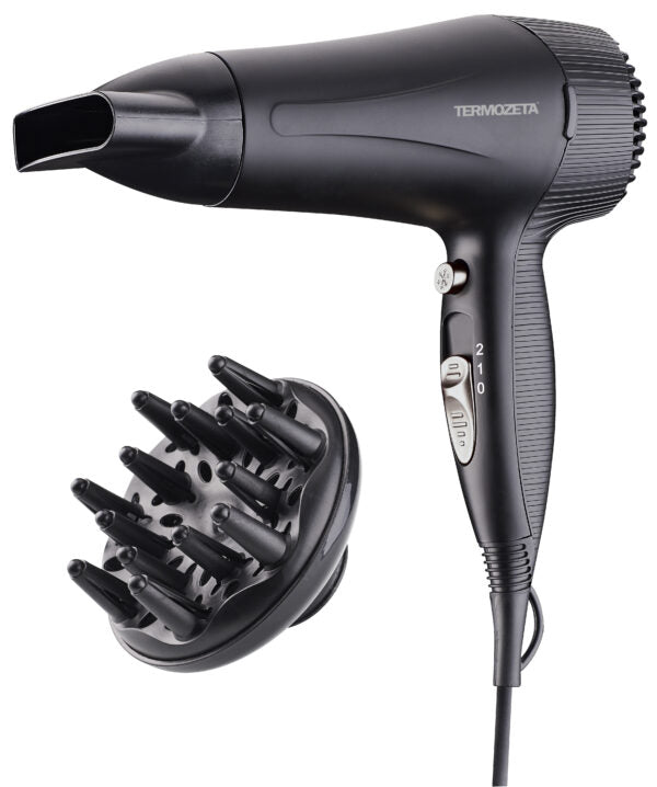 Il phon è dotato di 2 velocità e 2 temperature regolabili per adattarsi a ogni tipo di capello e styling, oltre al colpo d’aria fredda che aiuta a fissare la piega senza danneggiare la struttura del capello. Include un concentratore d’aria per un flusso preciso e un diffusore ideale per definire i ricci.