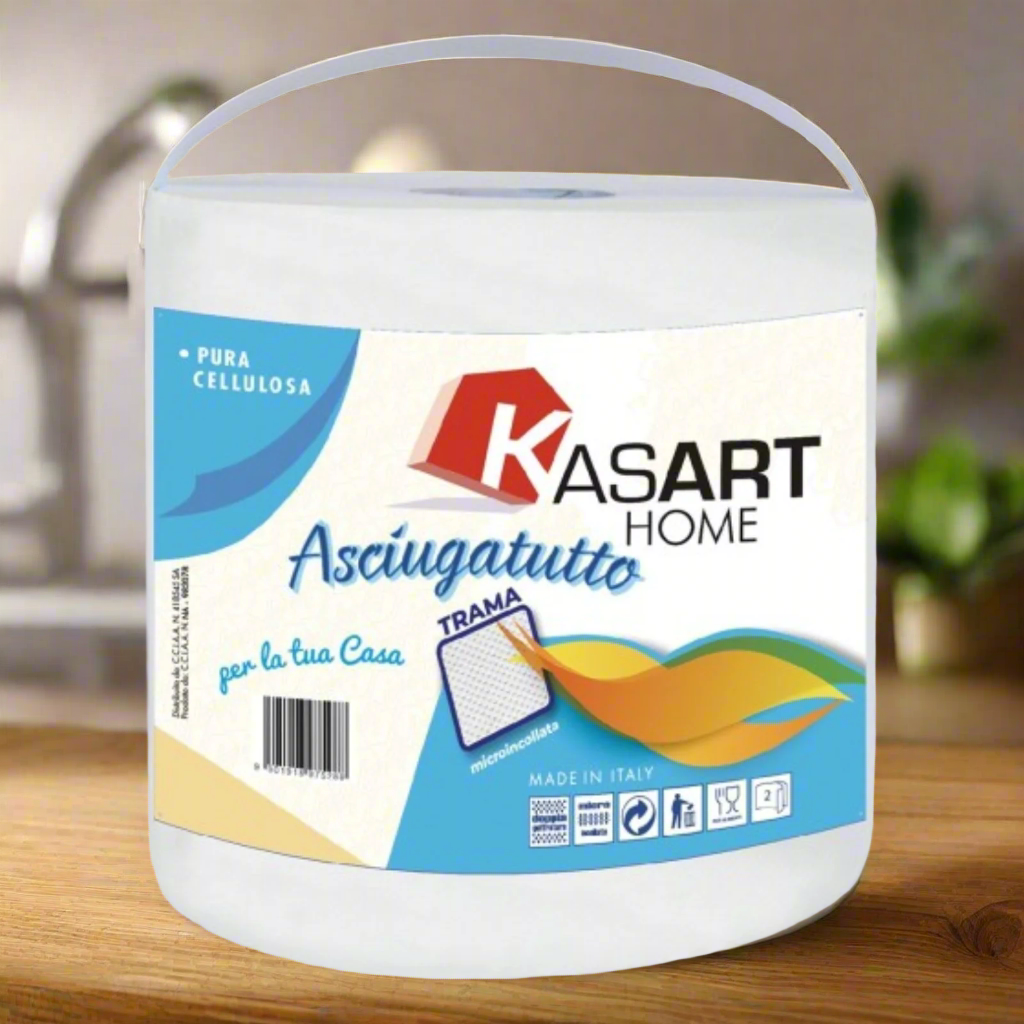 Questo rotolo, realizzato in pura cellulosa, è composto da 2 veli micro-incollati e goffrati, garantendo una straordinaria capacità di assorbenza e resistenza.