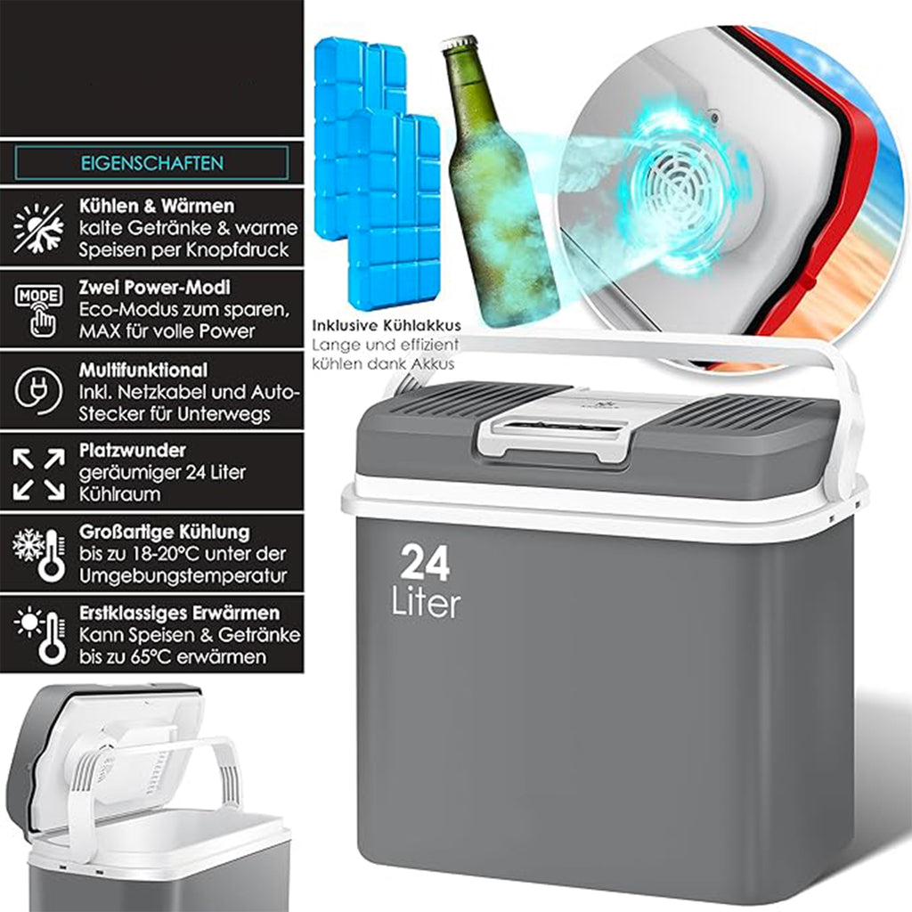 • 𝐅𝐔𝐍𝐙𝐈𝐎𝐍𝐄 𝐃𝐈 𝐑𝐀𝐅𝐅𝐑𝐄𝐃𝐃𝐀𝐌𝐄𝐍𝐓𝐎 𝐄 𝐑𝐈𝐒𝐂𝐀𝐋𝐃𝐀𝐌𝐄𝐍𝐓𝐎: Il frigo box da 24 litri vi garantisce bevande fresche in estate e alimenti caldi in inverno.