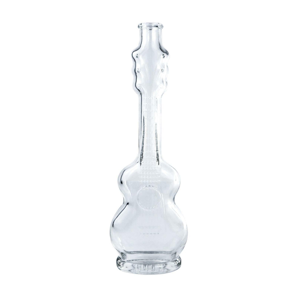 La forma, appunto, è quella di una chitarra. Riempiendo la bottiglia si possono vedere più dettagli, come le corde.