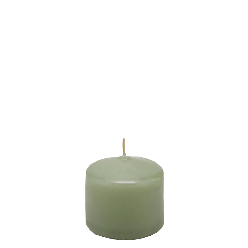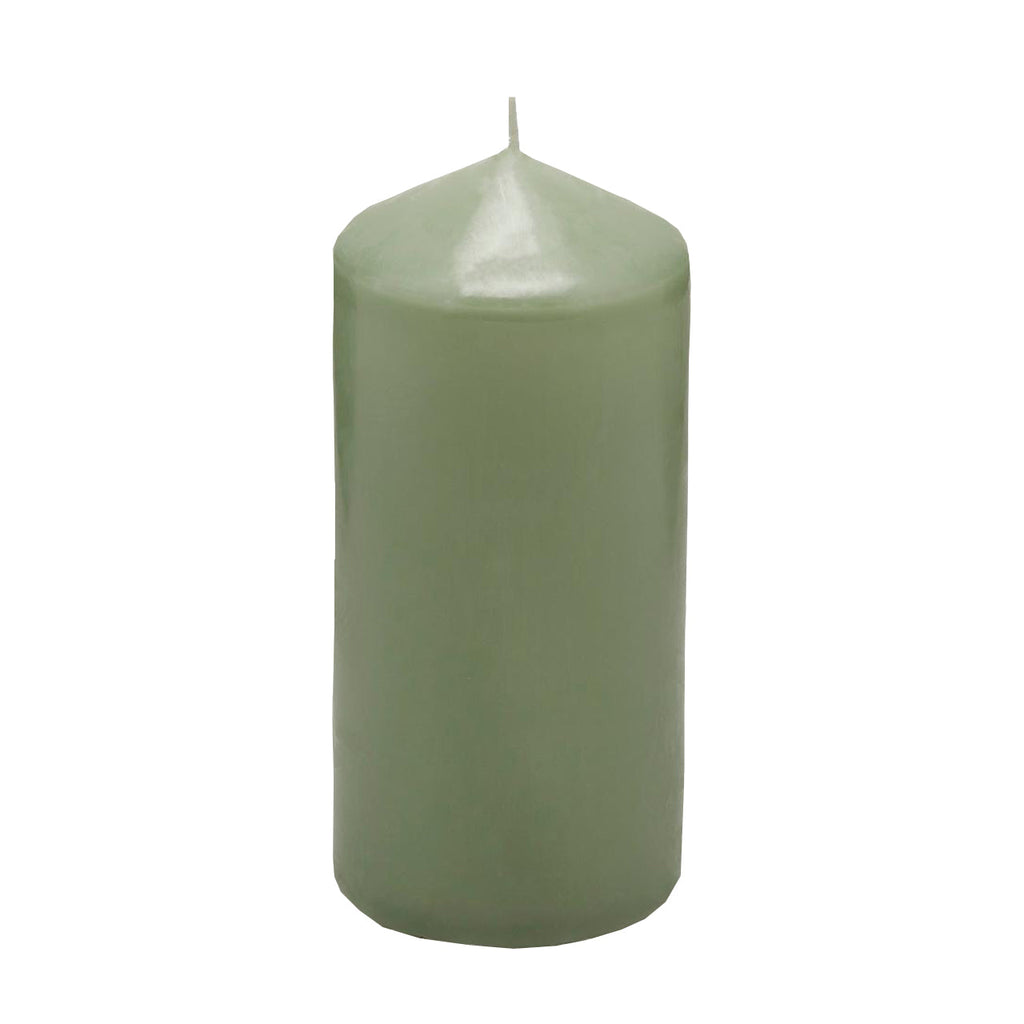 Candela classica in cera decorazione luminosa per ambienti color salvia