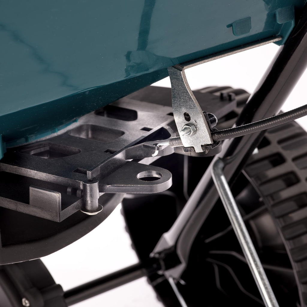 La caratteristica distintiva di questo carrellino è il sistema dei cursori, che permette di regolare la distribuzione del concime su entrambi i lati (sinistra o destra).