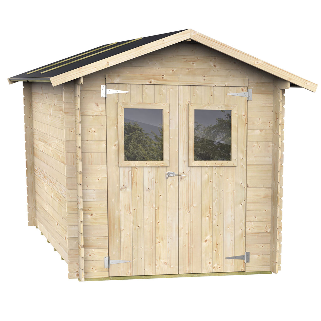 Il pavimento e il tetto, in legno OSB estremamente resistente alla flessione, con il loro spessore di ben 19 mm, e con la guaina bituminosa ardesiata, garantiscono protezione e isolamento all’avanguardia, così come le pareti rinforzate con un’armatura in abete naturale.