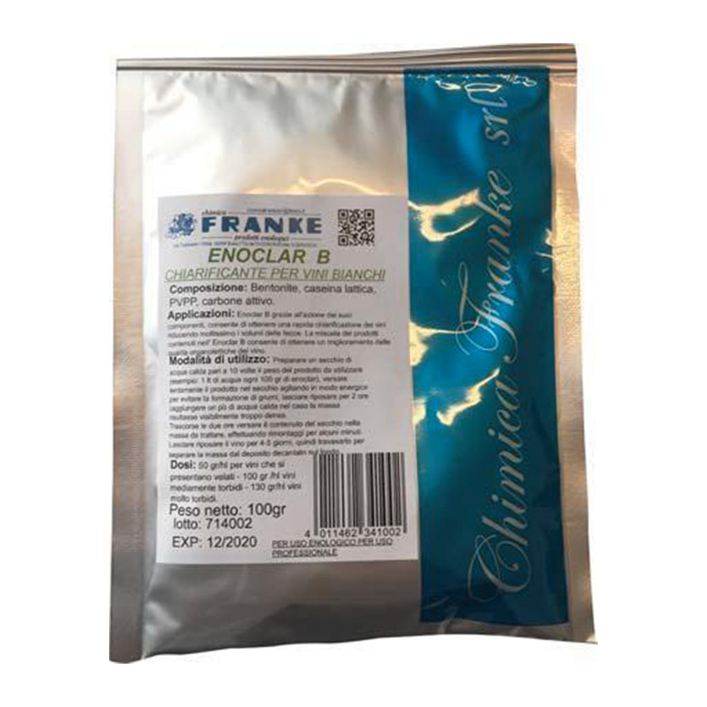 - Disperdere Enoclar B in acqua calda al 10 % sotto agitazione continua ed immettere subito alla massa da chiarificare, eseguendo un accurato rimontaggio.