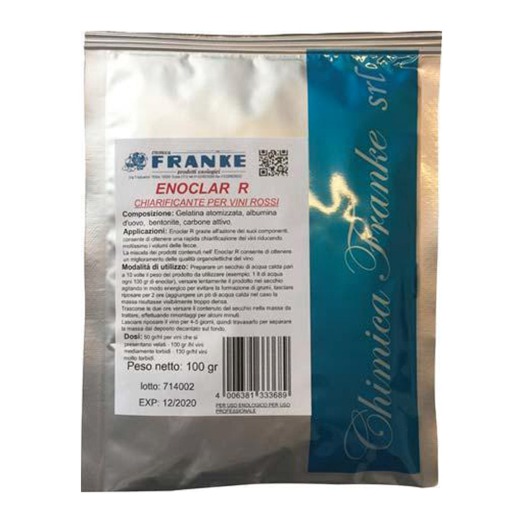 - Disperdere Enoclar R in acqua calda al 10% sotto agitazione continua ed immettere subito nella massa da chiarificare, eseguendo un accurato rimontaggio.