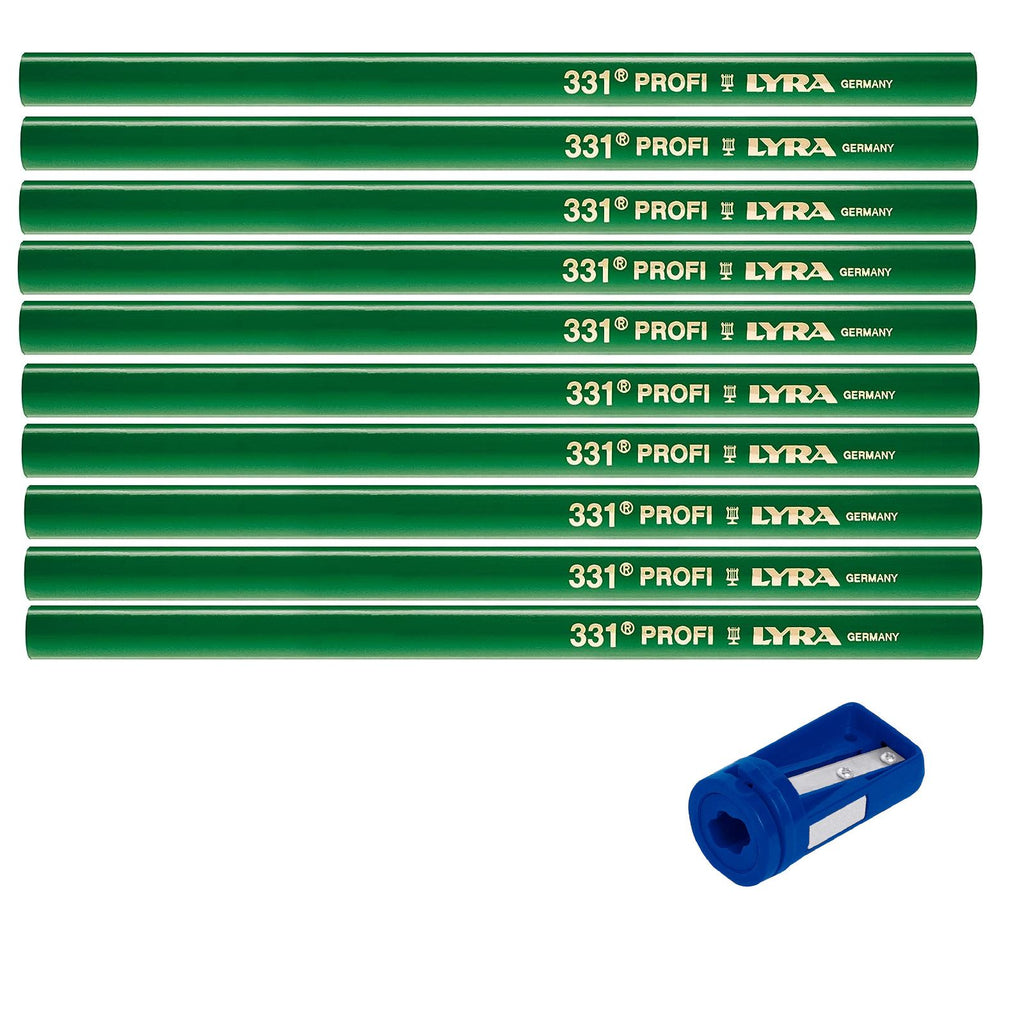 Set 10 Matite verdi per muratore a punta dura da 30 cm + temperino