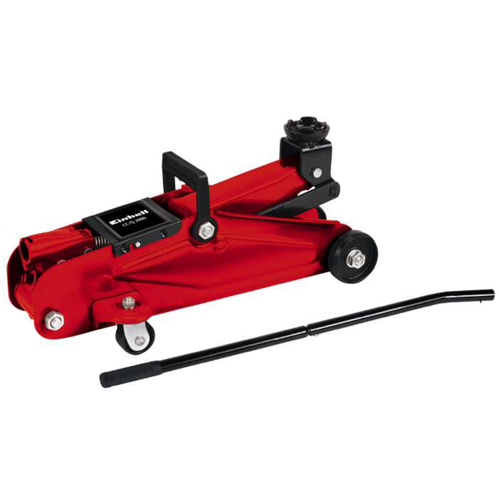 Il cric idraulico carrellabile CC-TJ 2000 è un martinetto idraulico statico e manovrabile provvisto di 2 tonnellate di capacità di sollevamento. Potendo raggiungere un'altezza di sollevamento di 33 cm, permette di svolgere velocemente operazioni di vario tipo in officina e in garage. La sella di supporto e l'asta di sollevamento garantiscono il sollevamento sicuro e facile del carico. I danni da sovraccarico vengono evitati grazie alla valvola di sicurezza incorporata. Le due ruote con cuscinetti a sfera permettono di manovrare facilmente il cric di sollevamento auto; la pratica maniglia di cui è dotato ne agevola il trasporto.