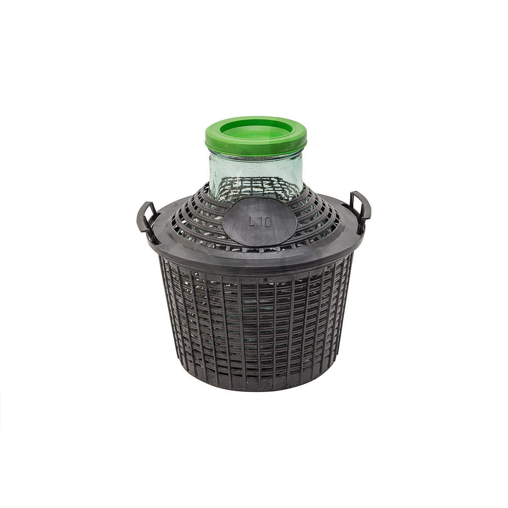 • Damigiana da litri 10, modello a bocca larga con cesto dotato di manici.