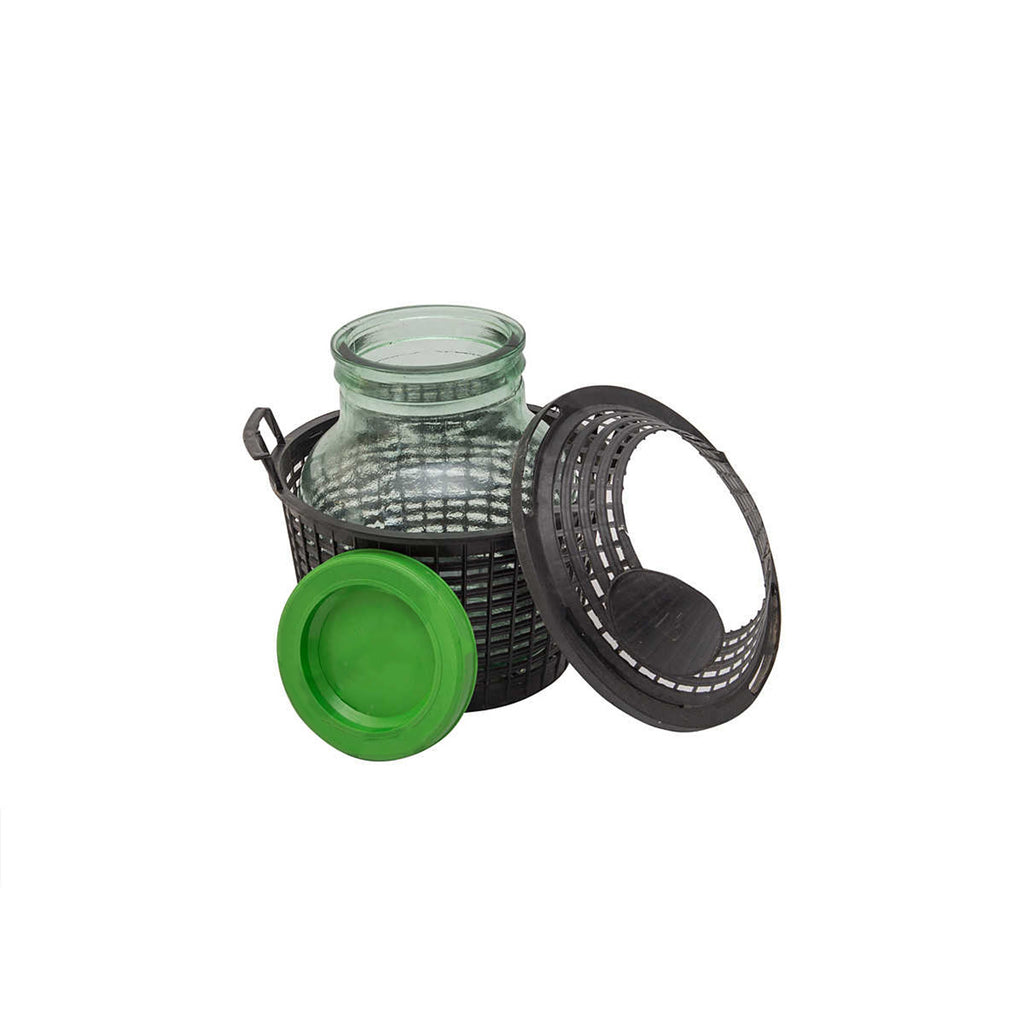 Damigiana in vetro "Bocca Larga" per vino, infusi e distillati con cesta in plastica