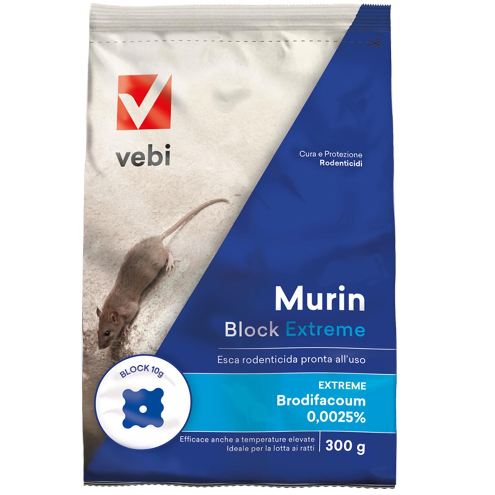 Affronta le infestazioni di roditori con "Murin Block Ex-Treme", un'esca rodenticida pronta all'uso formulata con Bromadiolone.