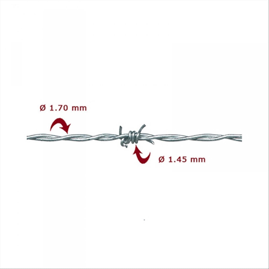 Il dispenser incluso nel prodotto è una struttura appositamente progettata per facilitare l'installazione e la distribuzione del filo spinato. È dotato di una maniglia che permette di srotolare il filo in modo controllato e preciso. La maniglia rende l'utilizzo del filo spinato più comodo e consente di avvolgere il filo in modo ordinato dopo l'installazione.