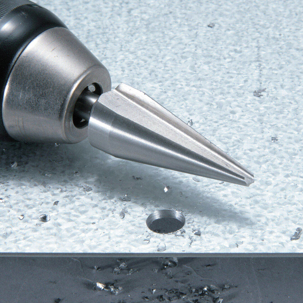 • Applicazione: La fresa è progettata per essere utilizzata su trapani e altre macchine utensili con mandrini adatti. Con la sua forma conica, è particolarmente indicata per eseguire svasature su metalli di varie dimensioni e spessori.