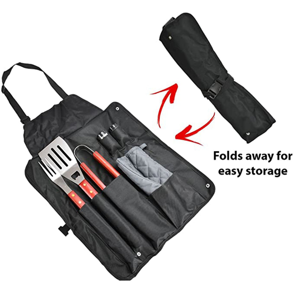Set completo di utensili da barbecue che mantiene tutto in ordine e pronto all'uso.