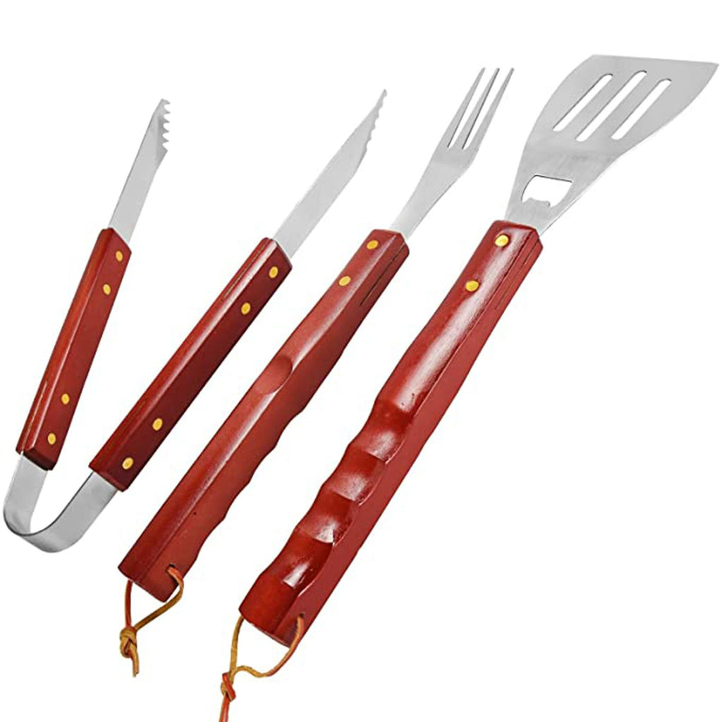 • I manici degli utensili da barbecue sono fatti di legno, così non si corre il rischio di ustioni.