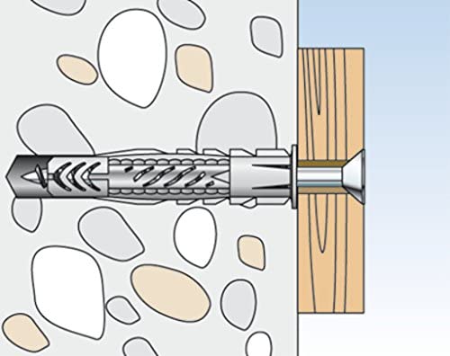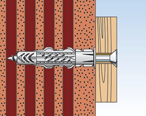 • 10 Tasselli con vite UX 6 - Diametro punta: 6 mm; profondità minima del foro: 55 mm; lunghezza tassello: 35 mm; spessore max fissabile: 10 mm