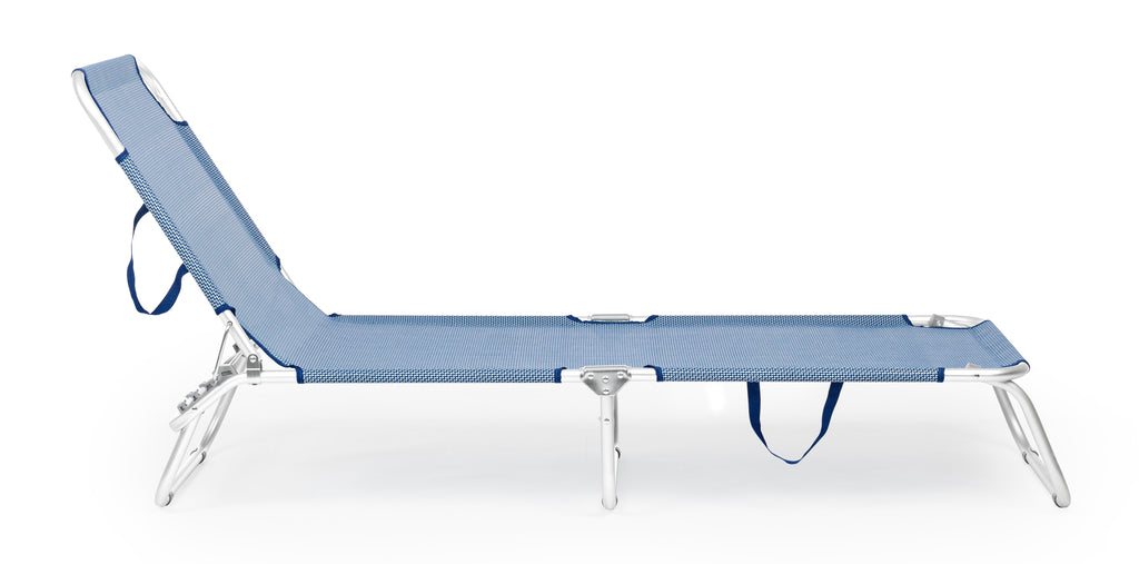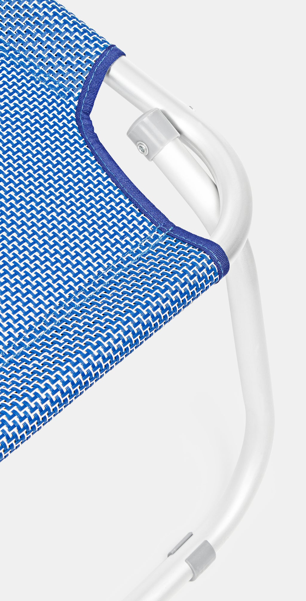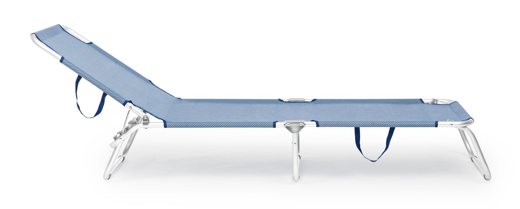 Textilene robusto e resistente. Lettino comodo da trasportare, può essere spostato in spiaggia e in giardino comodamente da un punto a un altro.