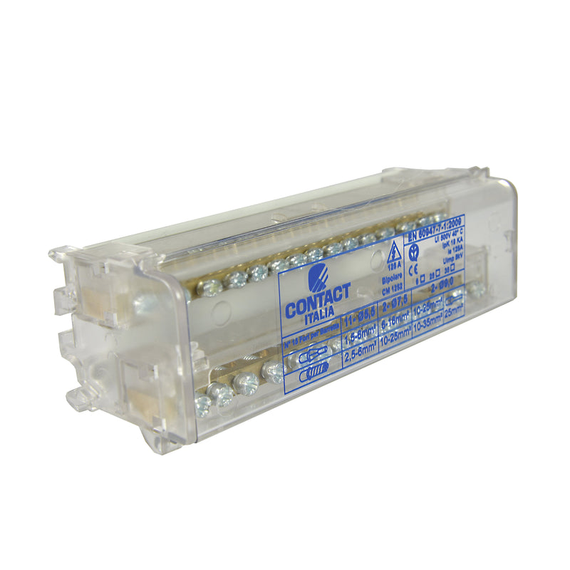 La gamma include quattro modelli bipolari e cinque tetrapolari con barrette a fori sfalsati. Nei bipolari è possibile derivare fino a 35 mm2 con correnti da 63 A a 125 A.
