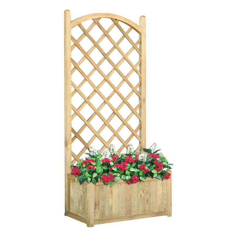 Il pannello grigliato con fioriera "Lasa" in legno di pino naturale è un prodotto versatile e decorativo progettato per recinzioni da giardino e terrazzo. Questo tipo di pannello grigliato offre una combinazione di funzionalità e estetica per delimitare lo spazio esterno in modo accattivante.
