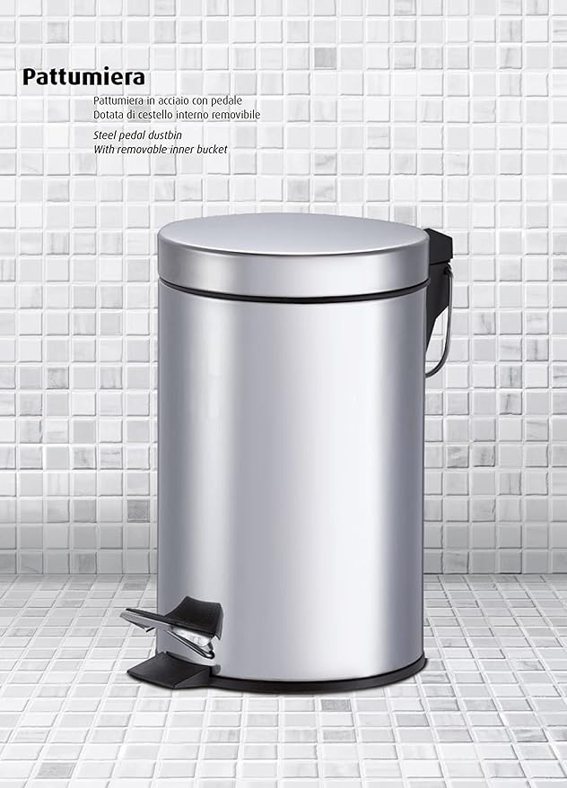 Grazie al pedale a pressione, consente un’apertura igienica senza l’uso delle mani, mentre il cestello interno removibile facilita lo svuotamento e la pulizia.