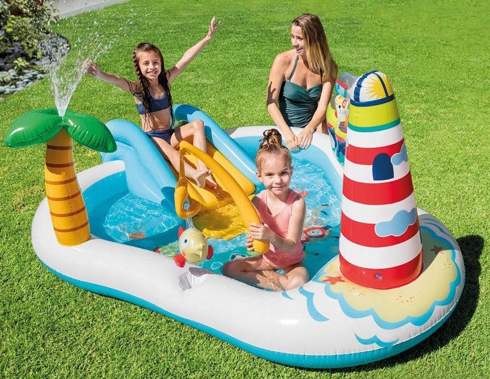 Intex Fishing Fun Play Center è la piscina per bambini che include scivolo, doccia a palma, canna da pesca e diversi giochi per il massimo del divertimento. La piscina è realizzata totalmente in vinile ad alta resistenza, per assicurare un prodotto di qualità, ed è composta da soli materiali scelti per garantire un prodotto sicuro.Capacità massima sopportabile: 81 kg.