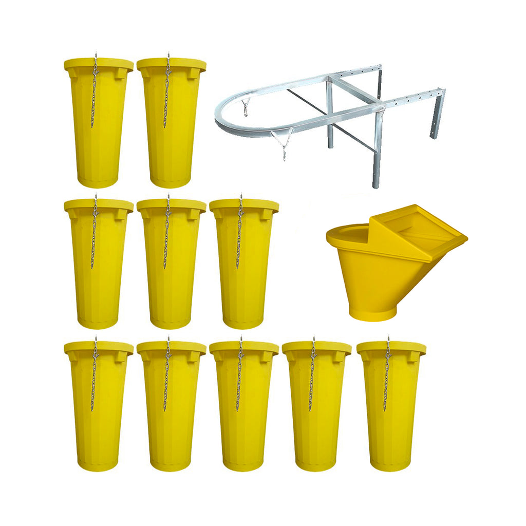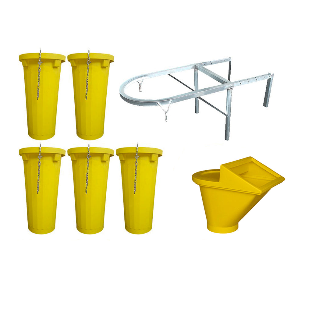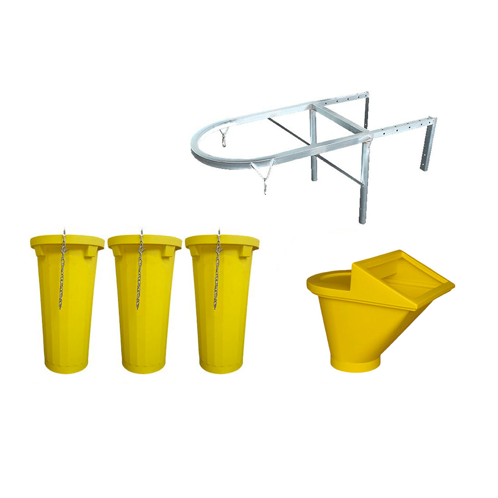 Scarica detriti, supporto e tramoggia in polietilene per edilizia e cantieri kit
