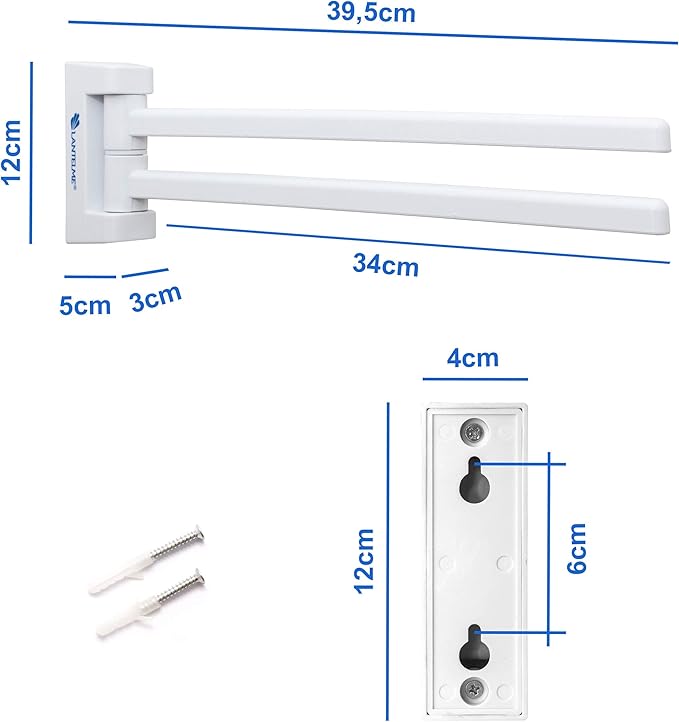 Grazie al meccanismo a snodo, consente di regolare facilmente la posizione degli asciugamani, ottimizzando lo spazio. Il fissaggio può avvenire a vite o con colla (non inclusa), offrendo un’installazione semplice e personalizzabile.