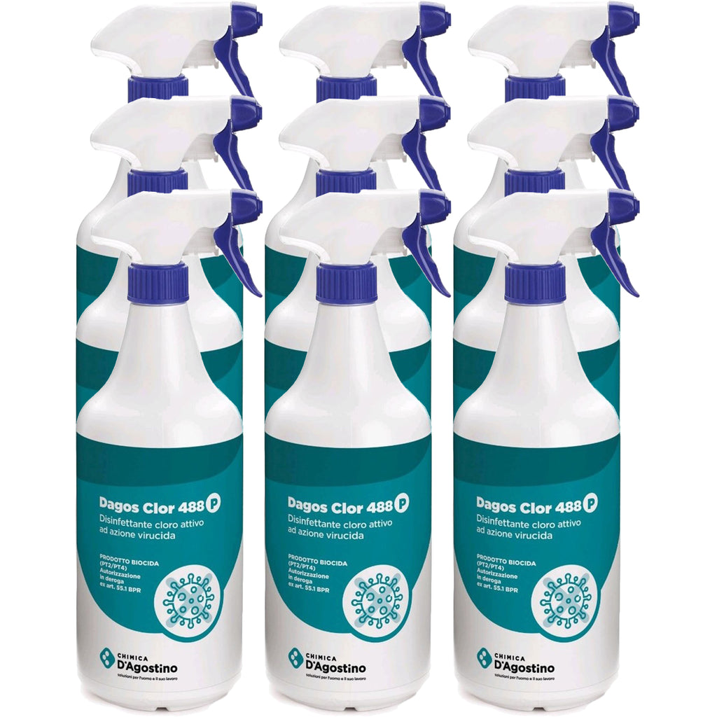 Spray disinfettante a base di cloro attivo "DAGOS CLOR 488" detergente da 750 ml antibatterico pronto all'uso