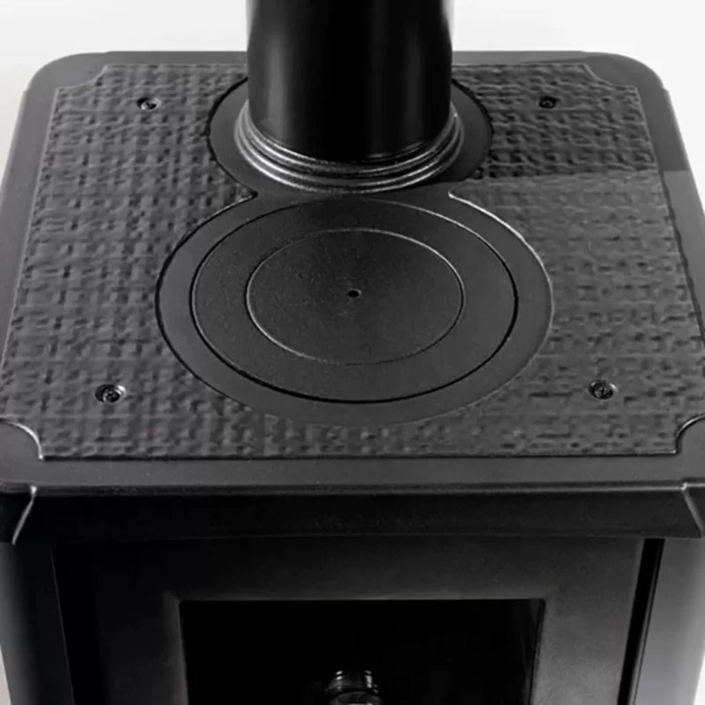 Questa stufa è dotata di un forno smaltato, ideale per preparare cibi mentre si riscalda l’ambiente. Il vetro ceramico, resistente fino a 750°C, permette di godere della visione del fuoco in tutta sicurezza.