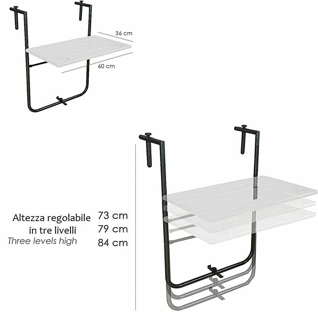 Tavolo richiudibile da balcone in acciaio piano in HDPE bianco per esterni