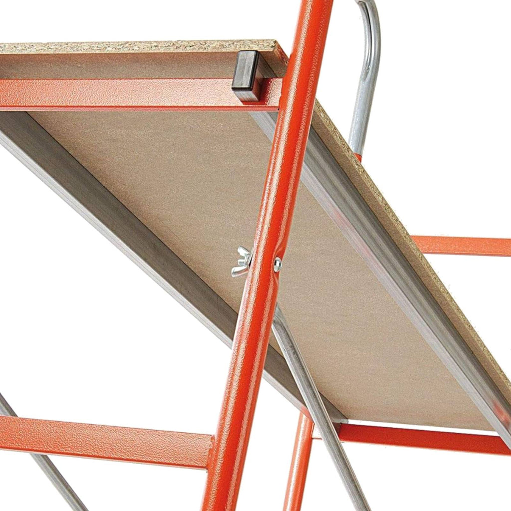 La sua struttura in acciaio verniciato, il pianale di calpestio in legno multistrato e la capacità di carico consentono di svolgere lavori in sicurezza a varie altezze.